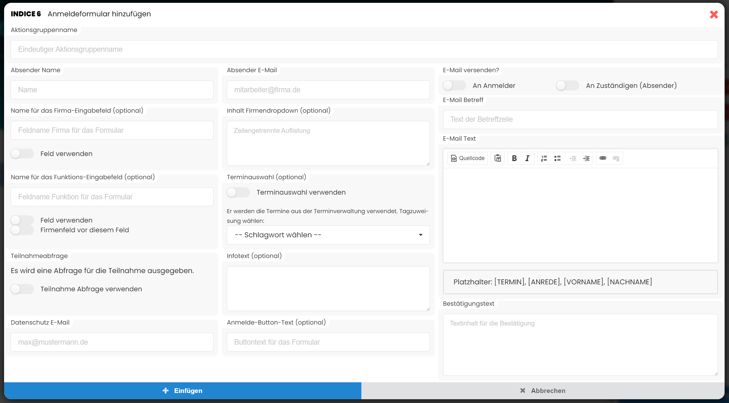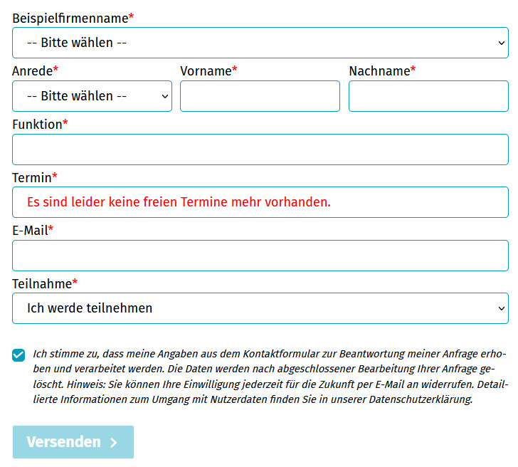 Sie können ein Formular erstellen, damit sich Personen für Veranstaltungen anmelden können. Es ist auch möglich, sich für freie Termine anmelden zu können. Diese müssen vorher HIER angelegt worden sein.