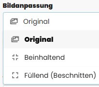 Hier legen Sie fest, wie die eingefügten Bilder innerhalb des Sliders dargestellt werden. Je nach Auswahl werden Bilder entweder vollständig angezeigt oder so zugeschnitten, dass der Bildausschnitt optimal in den verfügbaren Bereich passt.