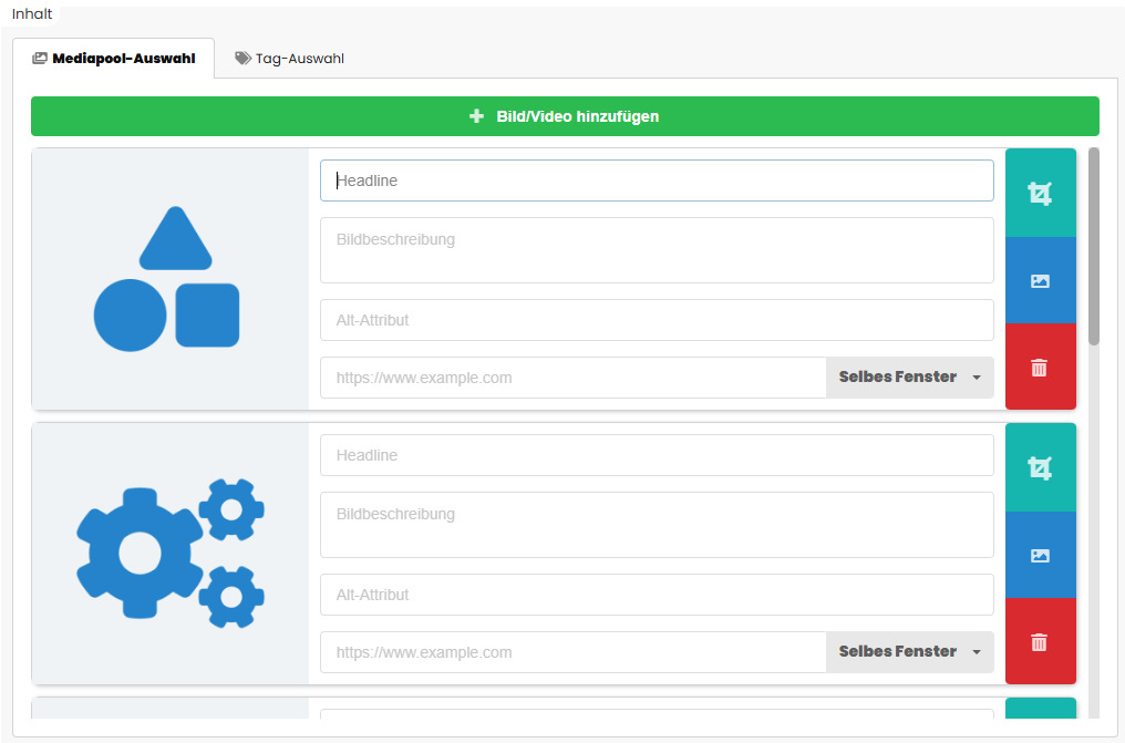 Inhalt (Bilder/Videos/Tag-Auswahl) des Sliders