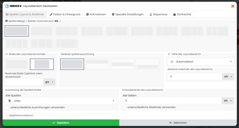 Nachdem Sie das Modul "Layoutbereich" an die gewünschte Stelle per drag an drop gezogen haben, öffnet sich das Modul, damit Sie weitere Einstellungen vornehmen können.