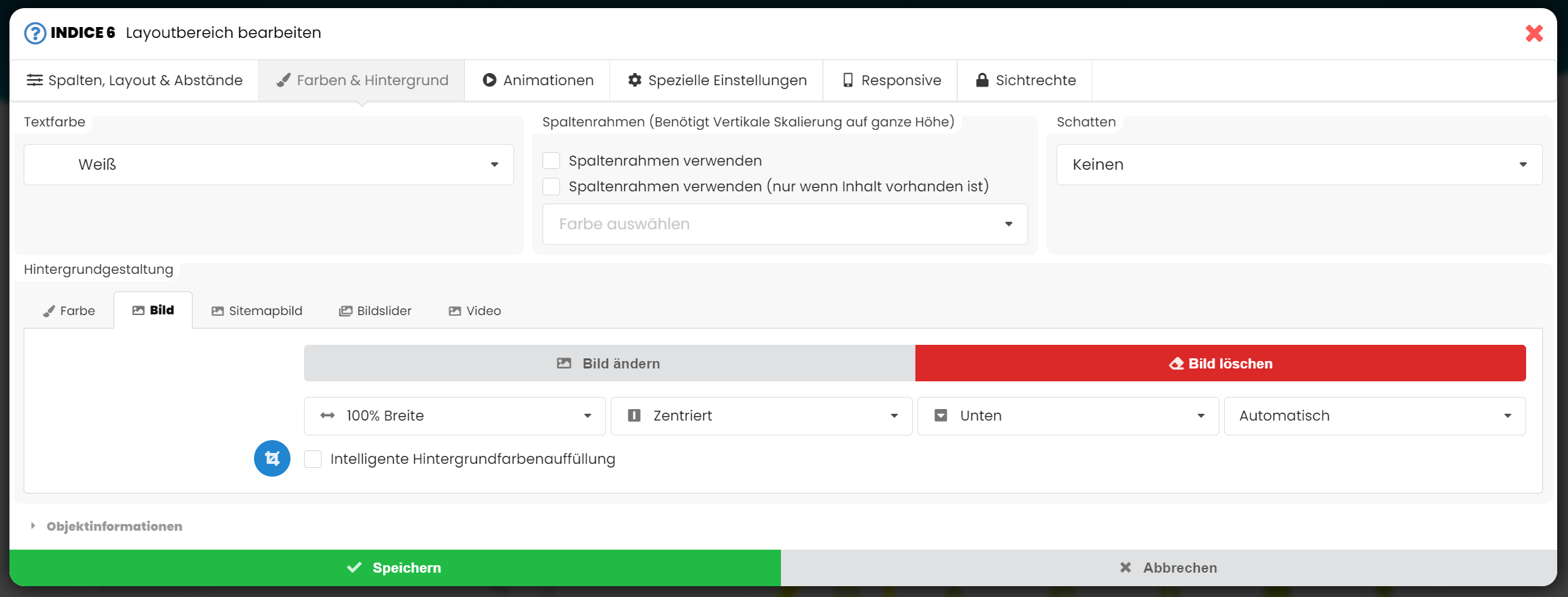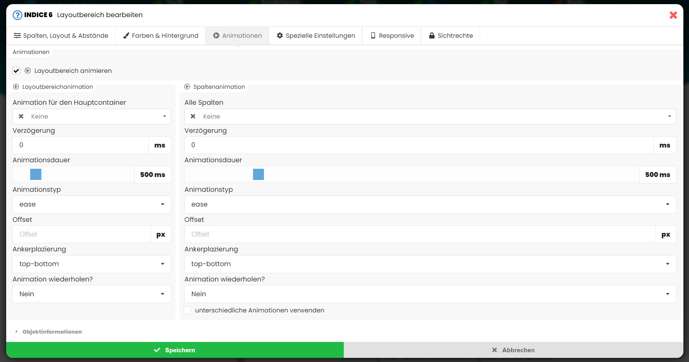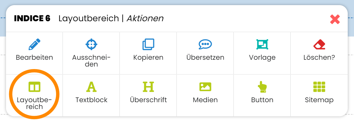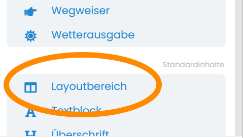 Das Modul „Layoutbereich“ ist die Grundlage für das Layout auf jeder Seite. Mit diesem Modul können Sie Inhalte in vordefinierten Layouts/Spalten neben-, unter- und inneinander anordnen. Layoutbereiche können unterschiedlich mit Farben, Bildern/Bildslidern, Videos und mehr gestaltet werden. In den Layoutbereichen können Sie Hintergrundbilder , Schriftfarben und -größe einstellen, Animationen zuweisen und weitere Details geändert werden. Damit ein Layoutbereich besser erkannt wird, erscheint ein kleines blaues Feld mit der Bezeichnung "Layoutbereich". Manche Einstellungen haben besondere Auswirkungen. Dann erscheint ein kleines Icon am linken Fuß eines Layoutbereiches.