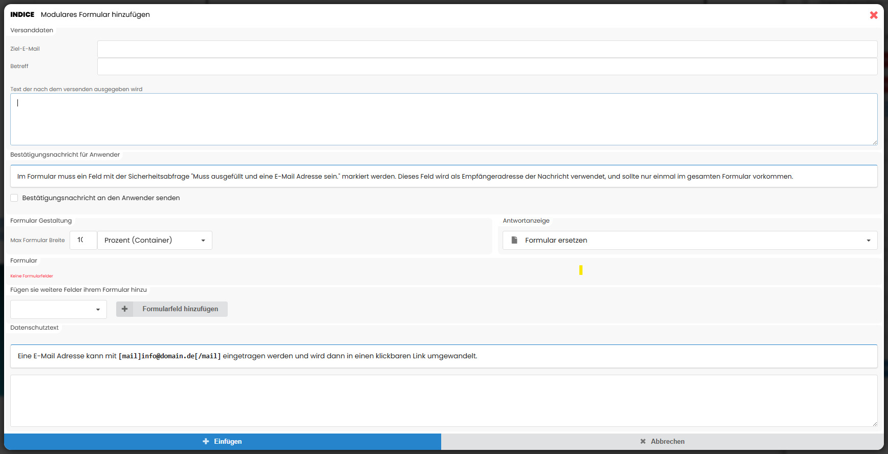 Formularfelder hinzufügen