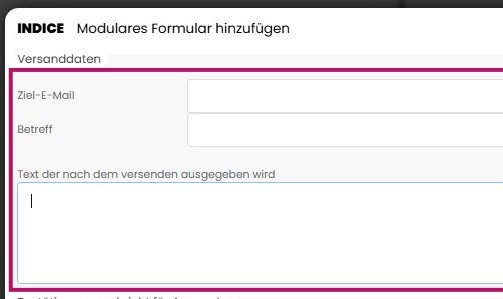 Hier legen Sie fest, an welche E-Mailadresse das ausgefüllte Formular gesendet wird und welchen Betreff die eingehende Nachricht tragen soll. Zudem können Sie einen Text hinterlegen, der nach dem Absenden auf der Website angezeigt wird.