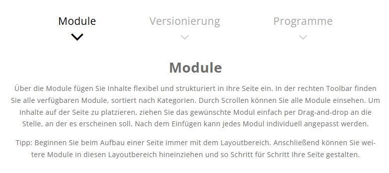 Typische Einsatzbereiche sind Produktseiten, Hilfeseiten oder Übersichtsseiten mit vielen Informationen, die in einzelne Themen gegliedert werden sollen.