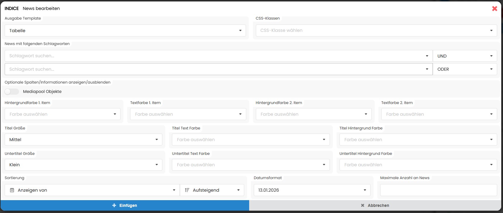 Die News werden zuvor zentral im Programm News angelegt und gepflegt und können anschließend flexibel auf verschiedenen Seiten angezeigt werden.