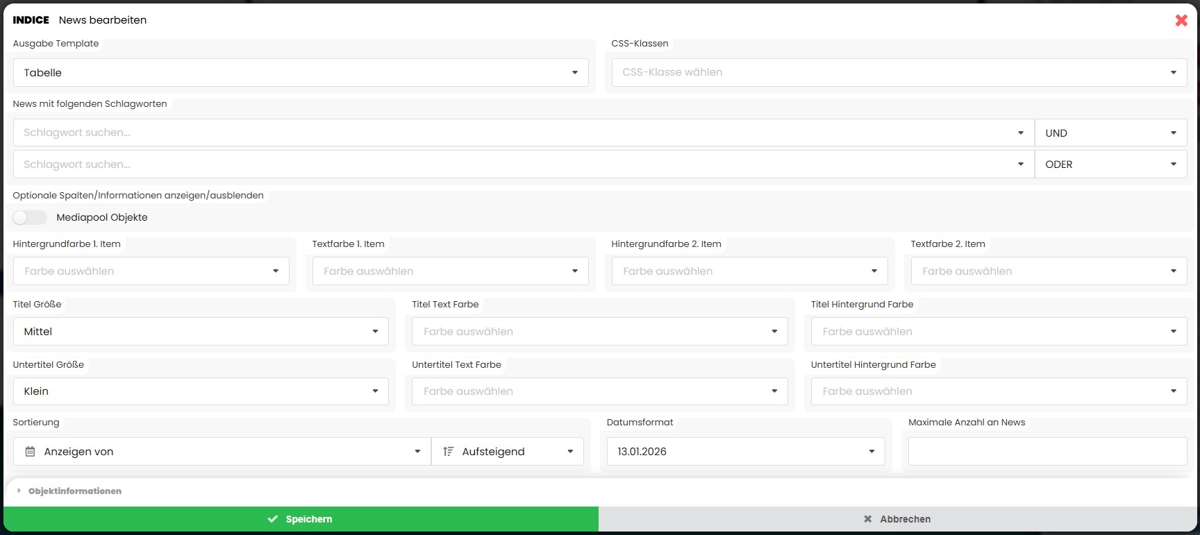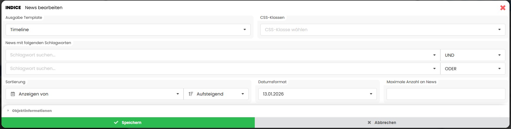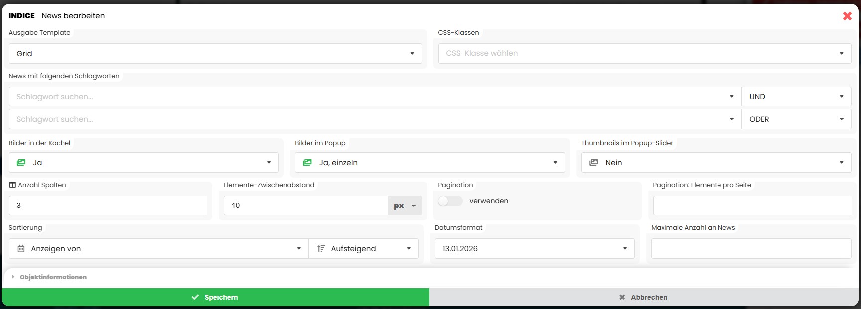 Mit dem Modul News binden Sie Inhalte aus dem Programm News gezielt auf Ihrer Seite ein. Die Ausgabe erfolgt über vordefinierte Schlagwörter, die den News-Einträgen zugewiesen sind.