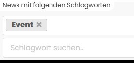 Schlagwörter (Tags) dienen dazu, Inhalte thematisch zu gruppieren und gezielt auszuspielen, zum Beispiel für News, Events oder Blogbeiträge. Sie können ein oder mehrere Schlagwörter auswählen und über UND oder ODER steuern, wie streng die Filterung erfolgen soll.