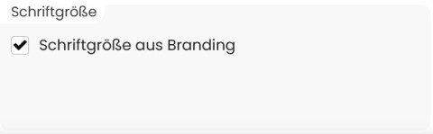 Ist „Schriftgröße aus Branding“ deaktiviert, kann die Schriftgröße manuell festgelegt werden. Dabei wählen Sie den Wert sowie die Einheit, zum Beispiel em oder px, um die Darstellung gezielt anzupassen.