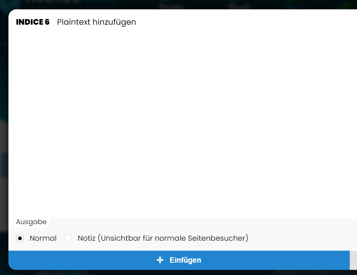 Durch dieses Modul können sie reinen Text ohne Formatierung ausgeben. Mit der Option "Notiz" können Sie Gedanken, Notizen oder Ideen direkt auf der Seite aufschreiben, ohne dass Seitenbesucher dies sehen oder suchen können. Für ein Team, dass eine Seite gestaltet kann dies sehr nützlich sein.
