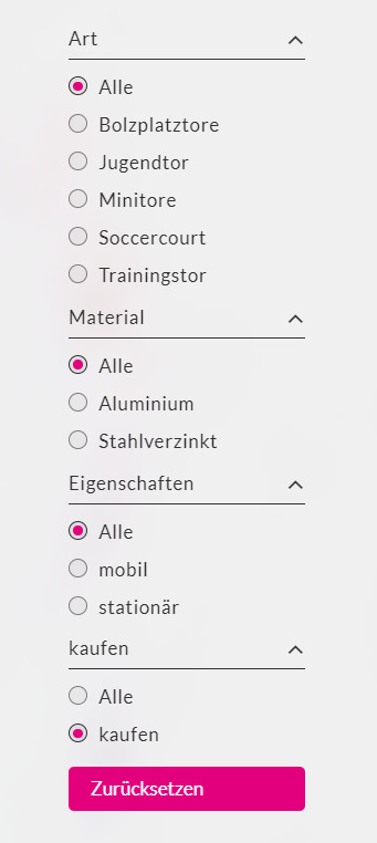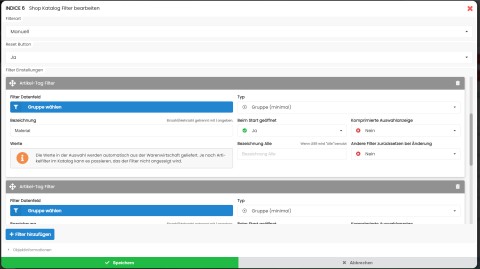 Nachdem Sie Produkttags in dem Programm Warenwirtschaft eingerichtet haben, können Sie mithilfe des Moduls „Shopkatalog Filter“ sinnvolle Filtermöglichkeiten in Ihren Shop einstellen, sodass der Kunde den gewünschten Artikel schneller findet. In folgenden Beispiel soll gefiltert werden nach Art und Material.