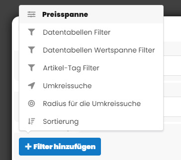 Im Modul werden die gewünschten Filter gesetzt. Filter 1 = Marke, Filter 2 = Produktart
