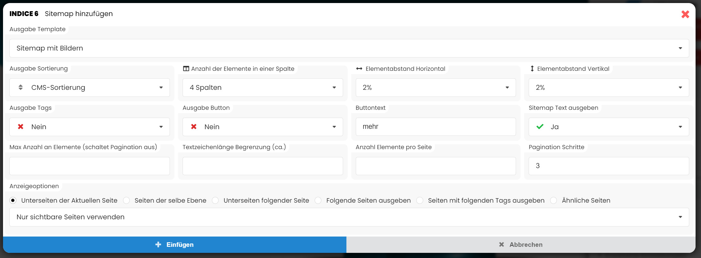 IndiceCMS bietet darüber hinaus viele weitere Möglichkeiten: So können Sie mit einer Sitemap auch gezielt an andere Stellen der Webseite verlinken. Oder sie bauen mit Hilfe des Sitemap-Moduls eine Blogseite auf, auf der thematisch nach bestimmten Seiten selektiert werden kann.