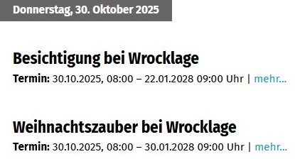 {datum_bis} Zeigt das Enddatum des Termins an. Auch hier erfolgt die Darstellung entsprechend dem Datumsformat.