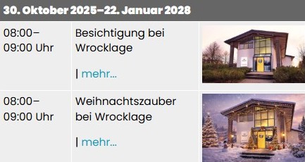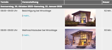 Zeitraumsuche: Besucher können Termine über einen frei wählbaren Zeitraum (von/bis) suchen und anzeigen lassen.