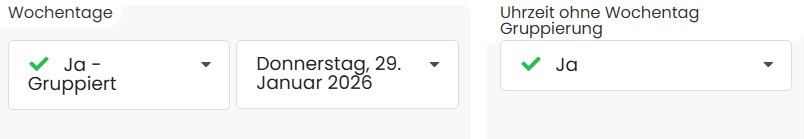 Alternativ kann die Uhrzeit ohne Wochentag Gruppierung ausgegeben werden, sodass die Uhrzeiten unabhängig von einer Wochentags-Gruppierung angezeigt werden.