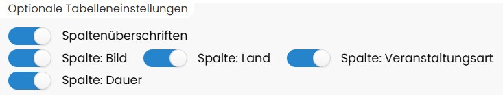 Blendet die Überschriftenzeile der Tabelle ein bzw. aus (z. B. „Termin“, „Ort“, „Art“ usw.).