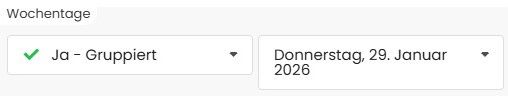 Hier legen Sie die Darstellung der Termine fest. Bei aktivierter Option Wochentage gruppieren werden die Termine nach Wochentagen zusammengefasst, z. B.
