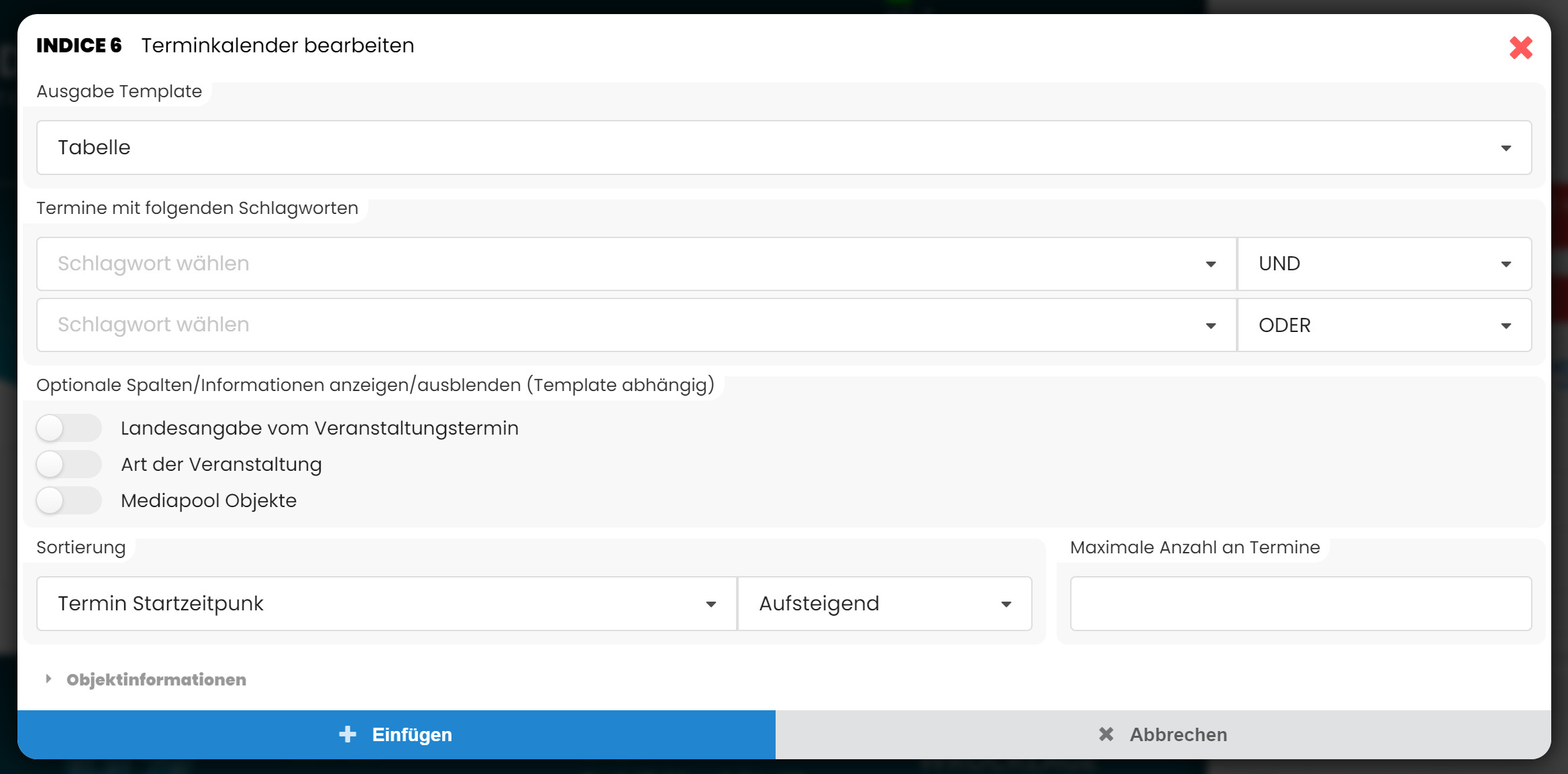 Dann können Sie hier im Modul bestimmte gewünschte Termine ausgeben.