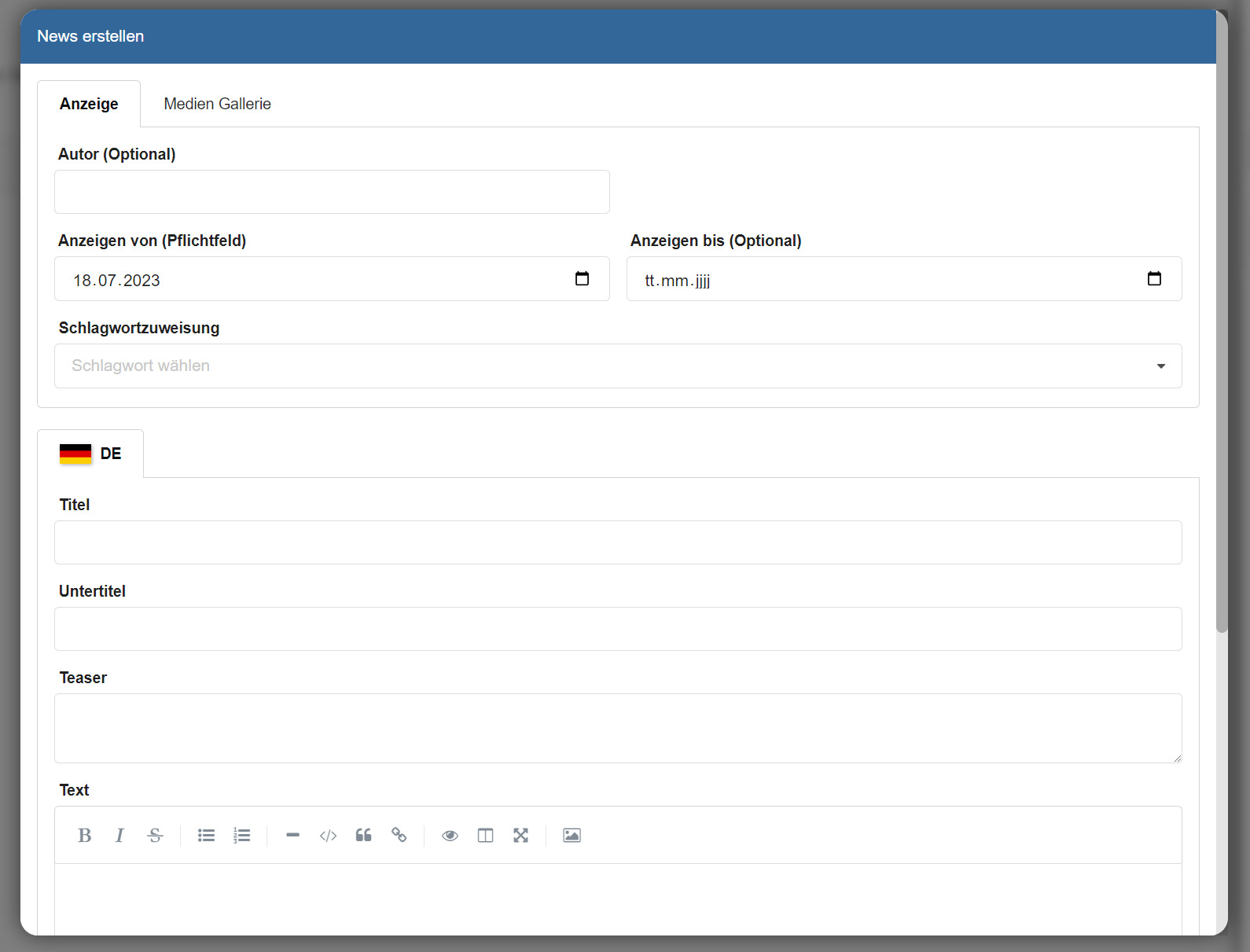 In dem Programm "News" tragen Sie alle News ein, die sie auf Ihrer Webseite ausgeben wollen.