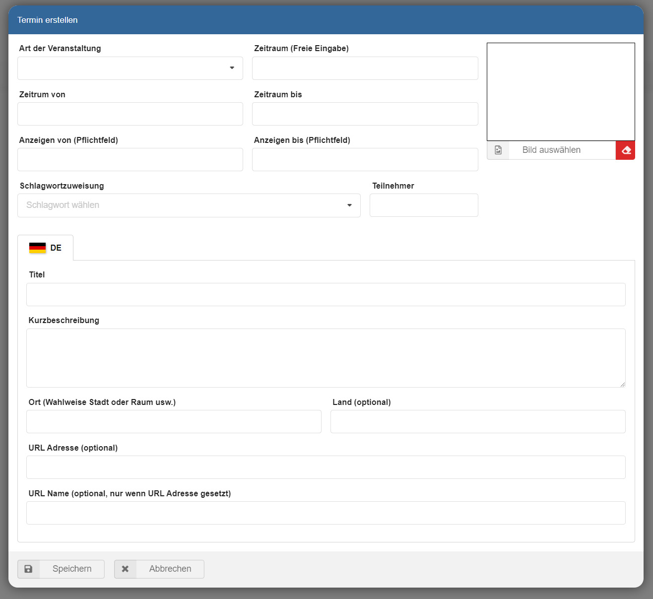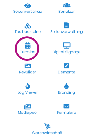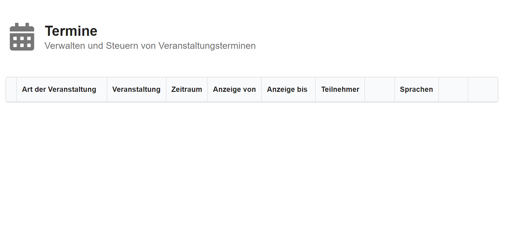 In diesem Programm werden die Termine eingetragen, die dann durch das Modul Terminkalender in einem Layoutbereich angezeigt werden. Ebenso können diese Termine im Anmeldeformular genutzt werden, um sich zu bestimmten Veranstaltungen anmelden zu können.